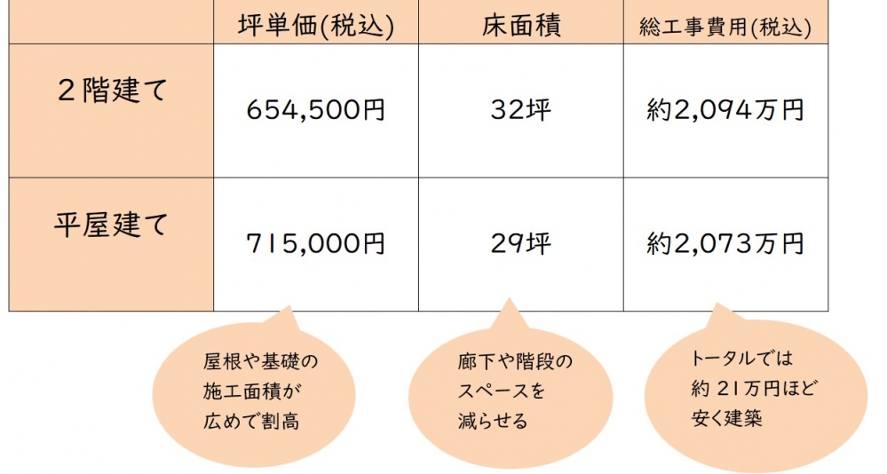 2階建より平屋の方がお安くなる分岐点は